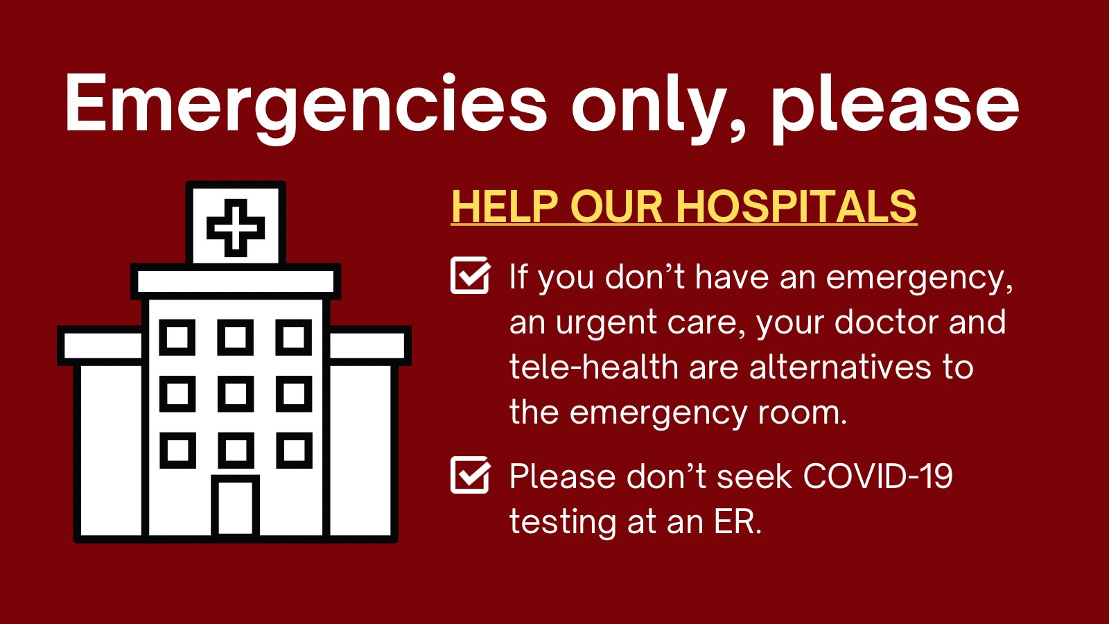 Az Dept Of Health On Twitter Help Keep Hospital Emergency Rooms Ready For Medical Emergencies Hospitals Are Reporting That People With No Symptoms Or Mild Symptoms Are Seeking Covid19 Tests At Ers